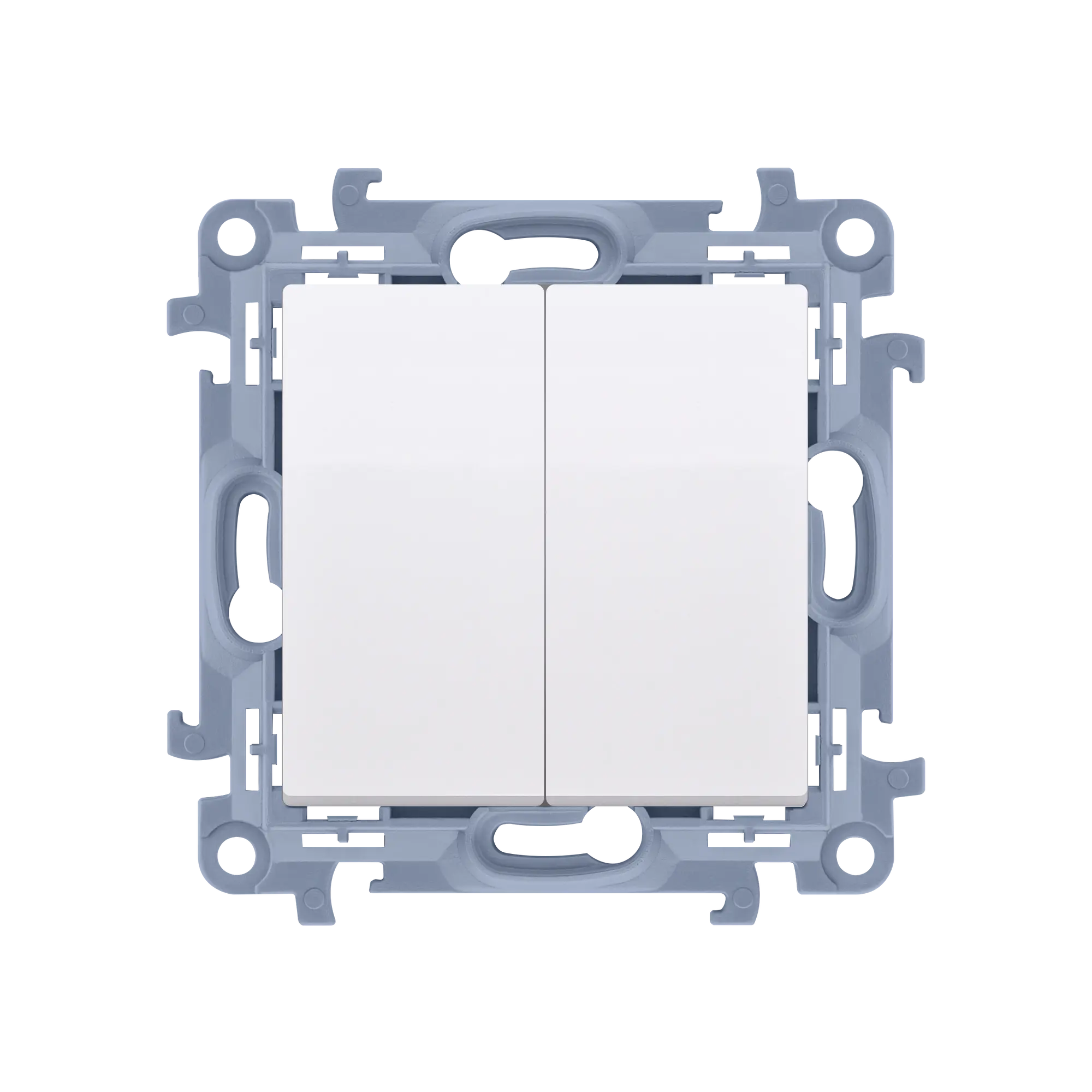 Pozwala na osobne sterowanie dwoma źródłami światła, takimi jak dwie lampy, kinkiety czy inne urządzenia oświetleniowe. Każdy z przycisków działa identycznie jak łącznik pojedynczy - po naciśnięciu pozostaje w stanie włączonym. lub wyłączonym. Tego typu łącznik jest idealnym rozwiązaniem, gdy chcemy kontrolować oświetlenie w różnych częściach pomieszczenia