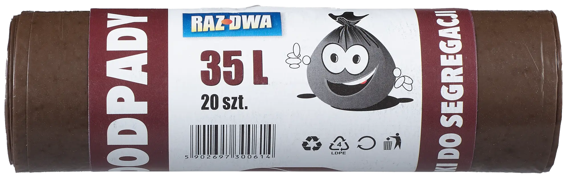 LDPE brązowe, pojemność 35L, 1 rolka = 20 sztuk.