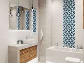 Innowacyjnym rozwiązaniem mogą być też płytki w kształcie wielokątów: sześcio- lub ośmiokątów, lub zastosowanie takiego dekoru wśród kwadratowych płytek.