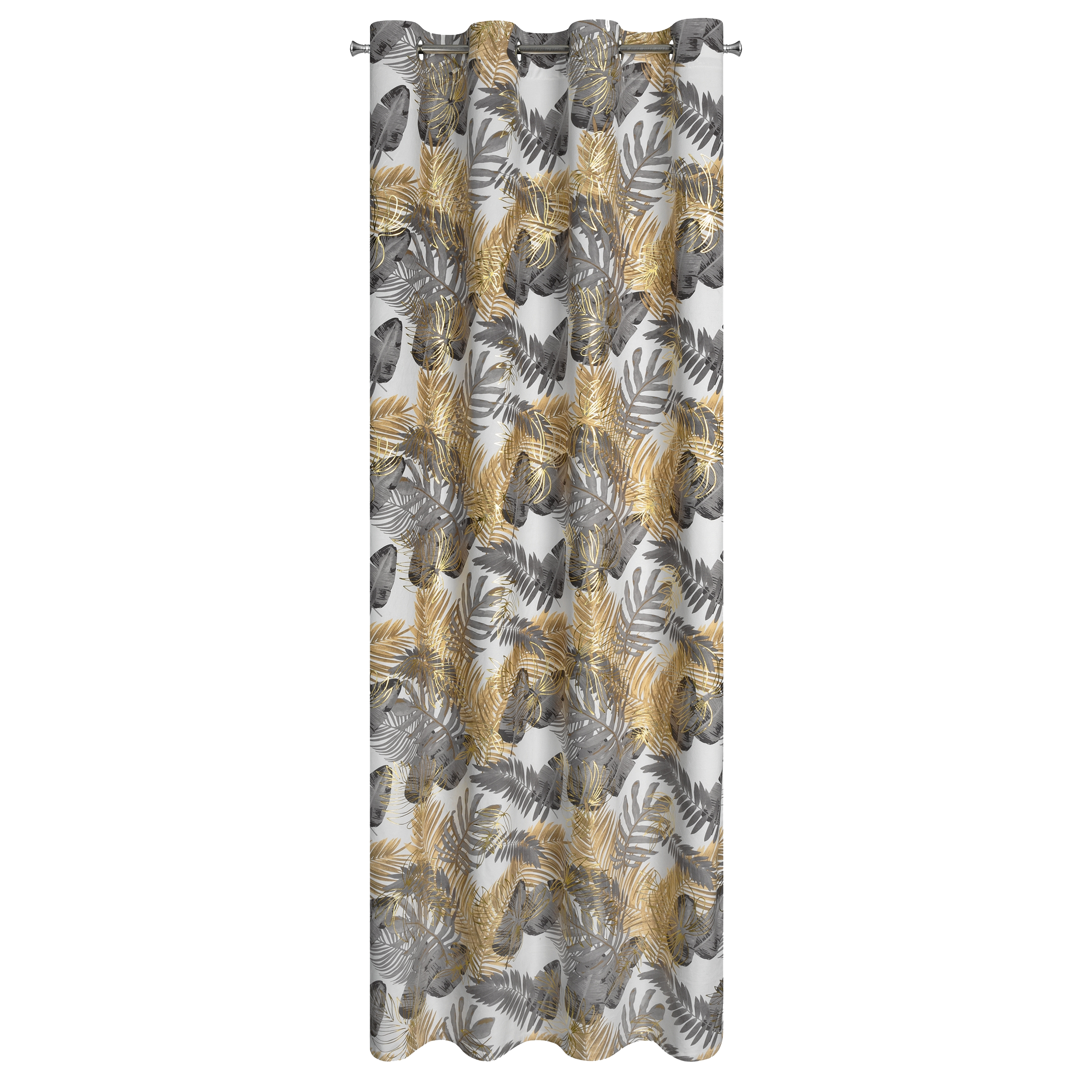 Miękka i delikatna w dotyku zasłona z przyjemnej welwetowej tkaniny, którą zdobi modny motyw egzotycznych liści ze złotymi elementami, na białym tle, to dodatek świetnie pasujący do nowoczesnych wnętrz. Praktyczne przelotki sprawiają, że zmiana dekoracji trwa tylko krótką chwilę, a tkanina pięknie się prezentuje po zawieszeniu na karniszu. Grubsza tkanina świetnie izoluje światło słoneczne zapewniając przyjemny klimat we wnętrzu.