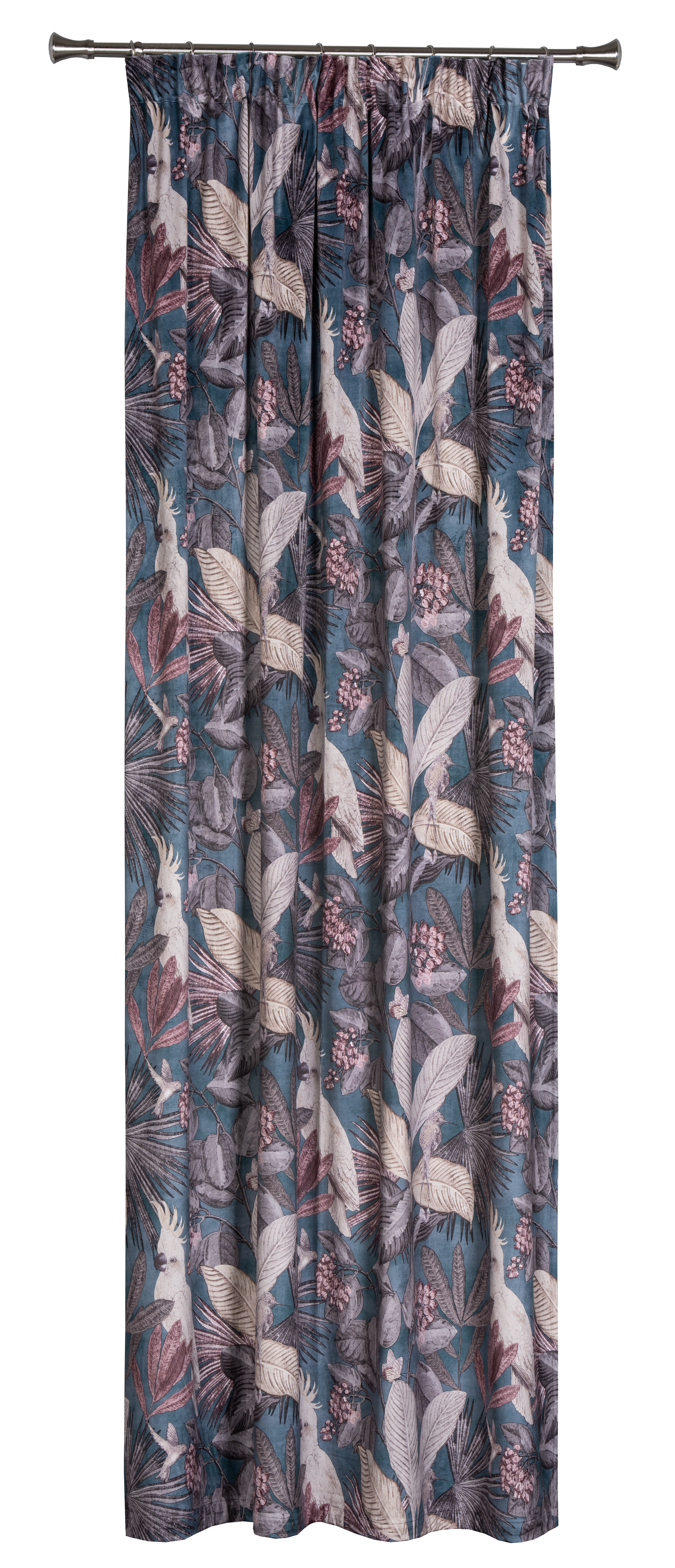 Zasłona Parrot niebieska 140 x 260 cm na taśmie