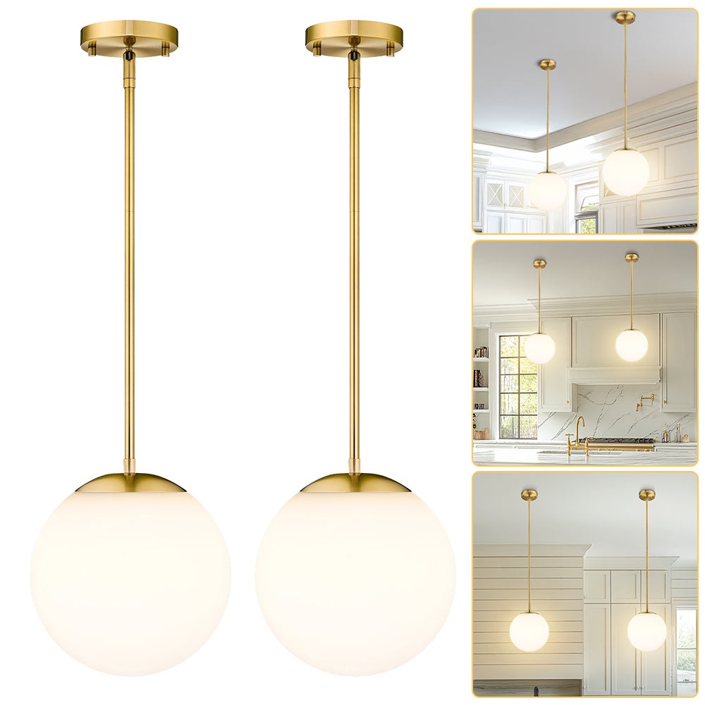 💡Unikalny, nowoczesny design: Dzięki szczotkowanej, złotej metalowej ramie i mlecznobiałemu szklanemu kloszowi w kształcie kuli, ta lampa wisząca wnosi powiew nowoczesnego luksusu i tworzy delikatne, nastrojowe oświetlenie w kuchni, jadalni lub biurze.