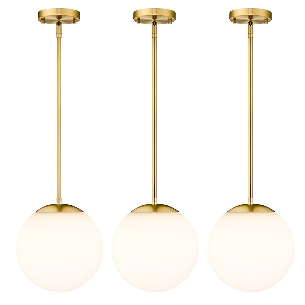 💡Unikalny, nowoczesny design: Dzięki szczotkowanej, złotej metalowej ramie i mlecznobiałemu szklanemu kloszowi w kształcie kuli, ta lampa wisząca wnosi powiew nowoczesnego luksusu i tworzy delikatne, nastrojowe oświetlenie w kuchni, jadalni lub biurze.