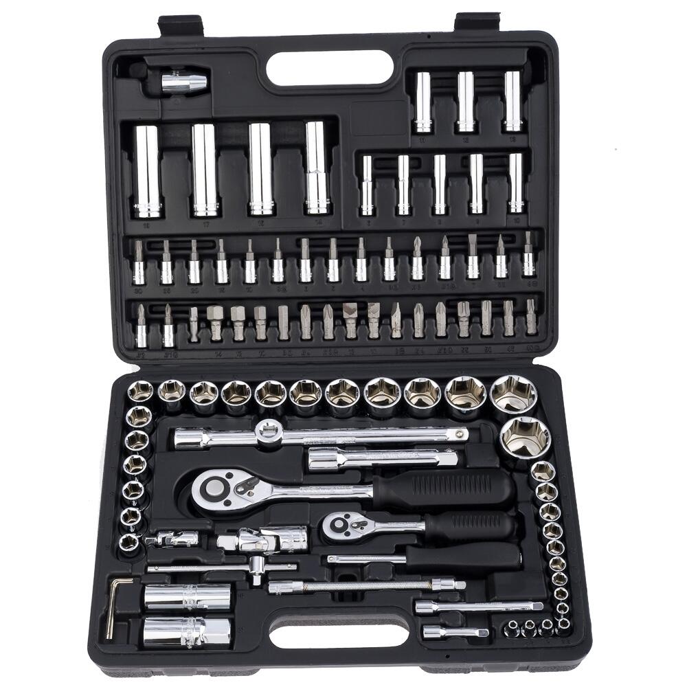 94 elementy, w tym nasadki w dwóch rozmiarach 1/2 i 1/4 cala.