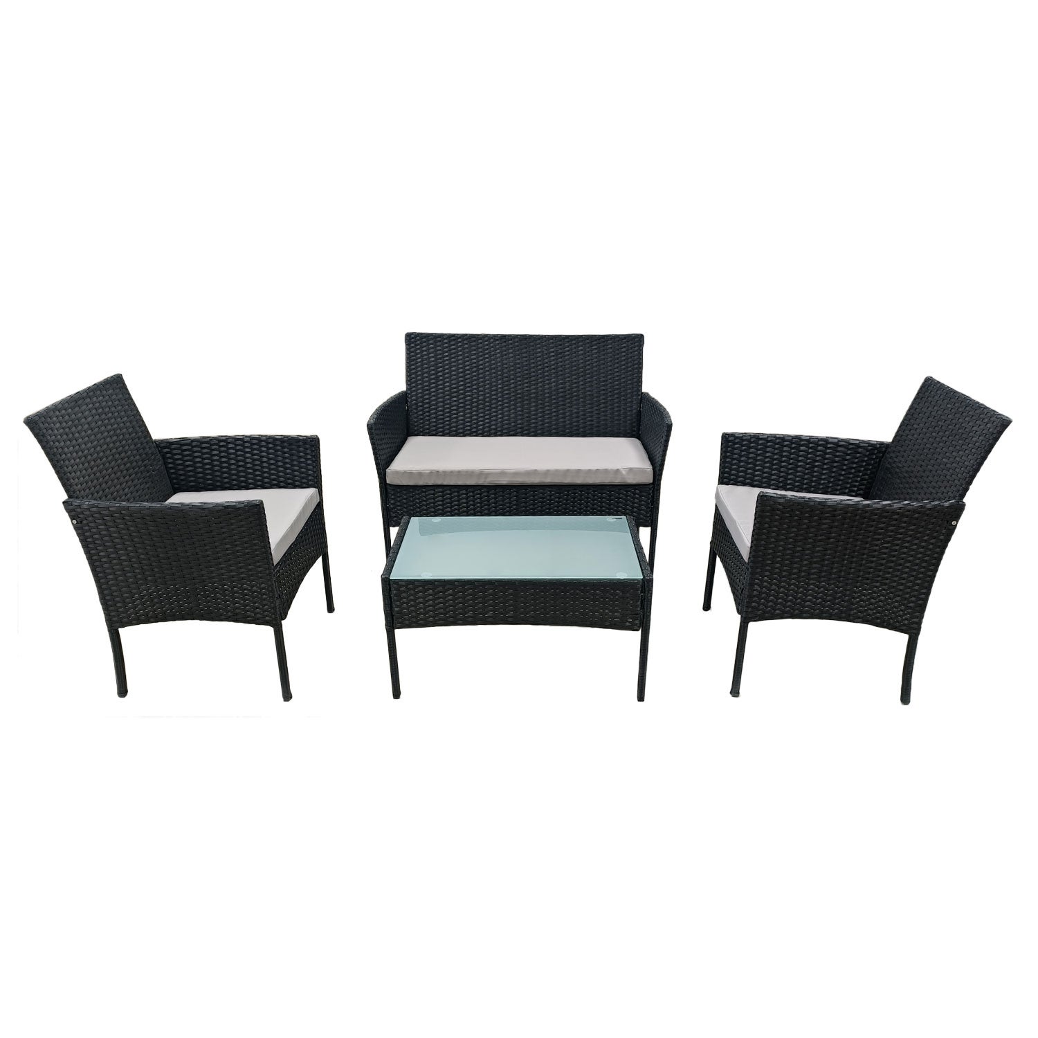 Zestaw mebli ogrodowych CORFOU z czarnej plecionej żywicy, 4-osobowy - szare poduszki