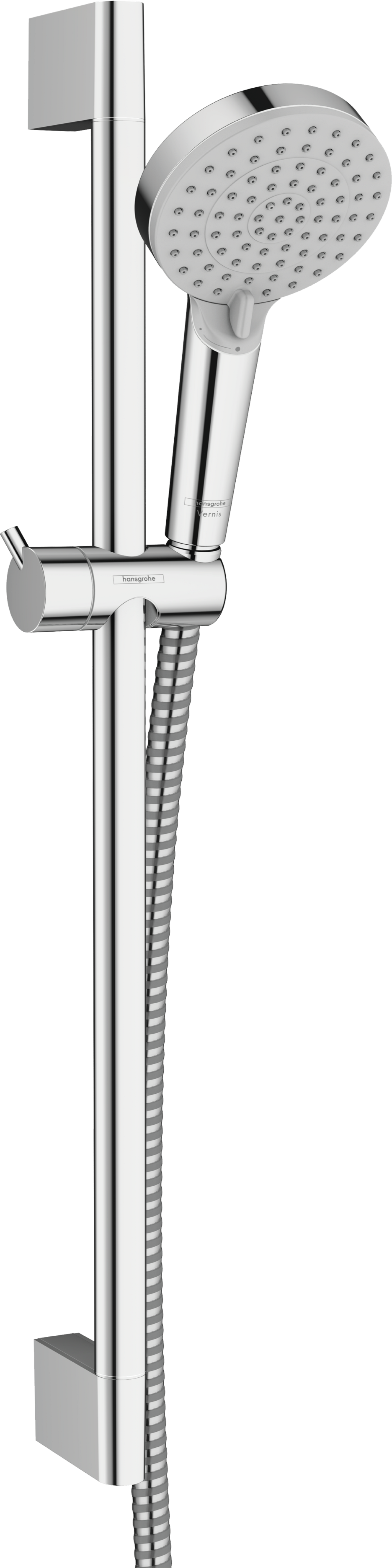 Zestaw prysznicowy Vernis Blend Vario hansgrohe z drążkiem prysznicowym o długości 65 cm zachwyca swoją funkcjonalnością, jakością, ceną oraz frajdą z korzystania. Główka prysznicowa Vernis Blend Vario 100 mm równomiernie rozprowadza wodę po całym ciele (XXL Performance). Dwa strumienie gwarantują wysoki komfort kąpieli: Silny strumień Rain zapewnia ożywiającą świeżość dla całego ciała zaś IntenseRain rewitalizuje i świetnie sprawdza się przy spłukiwaniu szamponu. Szybki przełącznik: Rodzaje strumienia można prosto przełączać, przekręcając tarczę strumieniową główki prysznicowej. Kolejna korzyść: Mocny, mosiężny, chromowany drążek prysznicowy o długości 0,65 m, na którym można regulować wysokości główki prysznicowej.