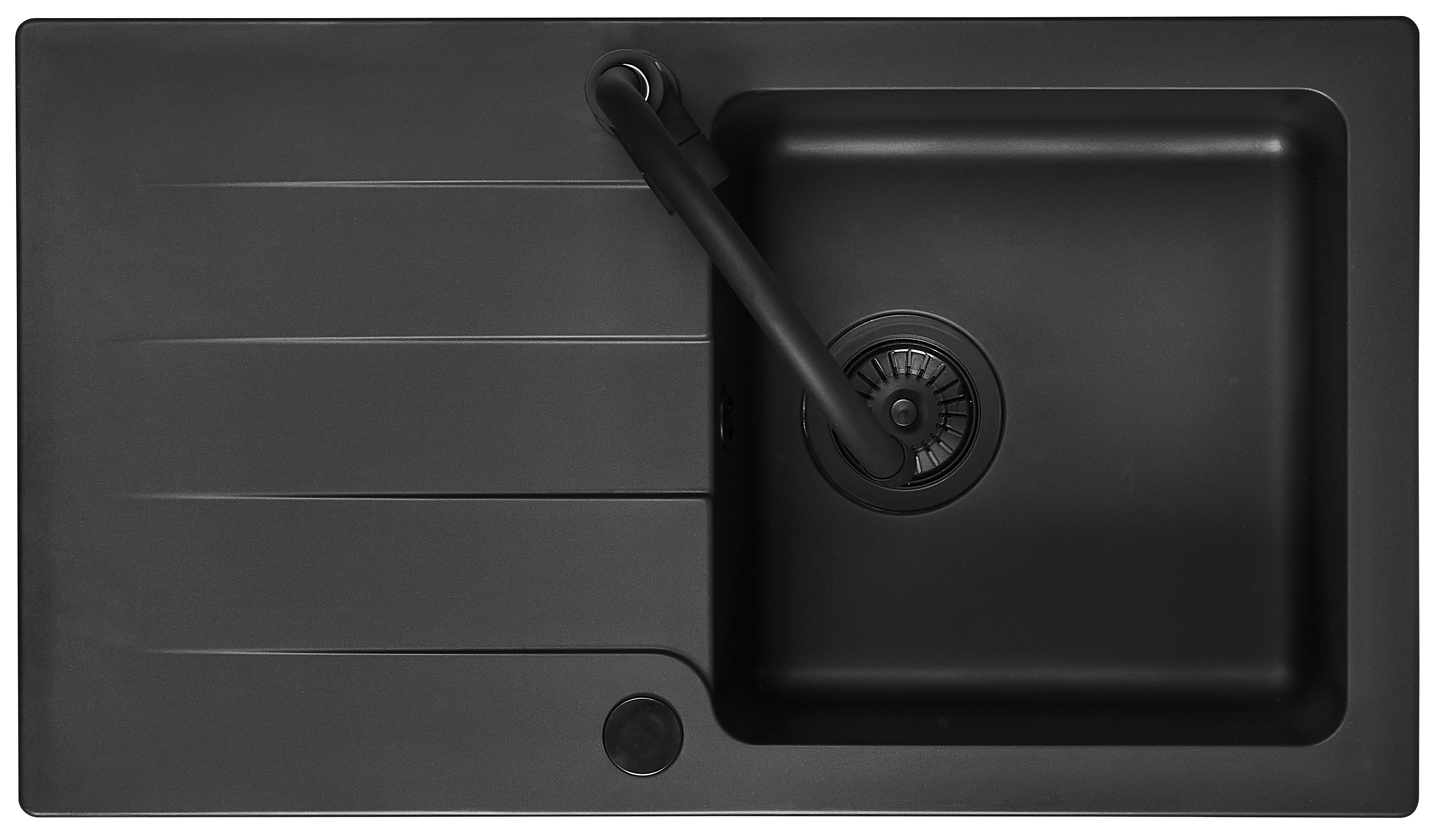 Nowość w ofercie. Zestaw SARMA + bateria elastyczna to nowoczesny produkt dla każdej kuchni. Zlewozmywak może być zamontowany pośród mebli kuchennych na dwa sposoby ze względu odwracalną konstrukcję. Wyposażony jest w jedną komorę zlewu kuchennego oraz jeden ociekacz. Charakteryzuje się wysokimi właściwościami wytrzymałościowymi ze względu na użyty materiał - granit. Dodatkowo głęboki czarny kolor nadaje elegancji produktowi. Dołączony syfon w kolorze czarnym dodatkowo podkreśla nowoczesny charakter zestawu.