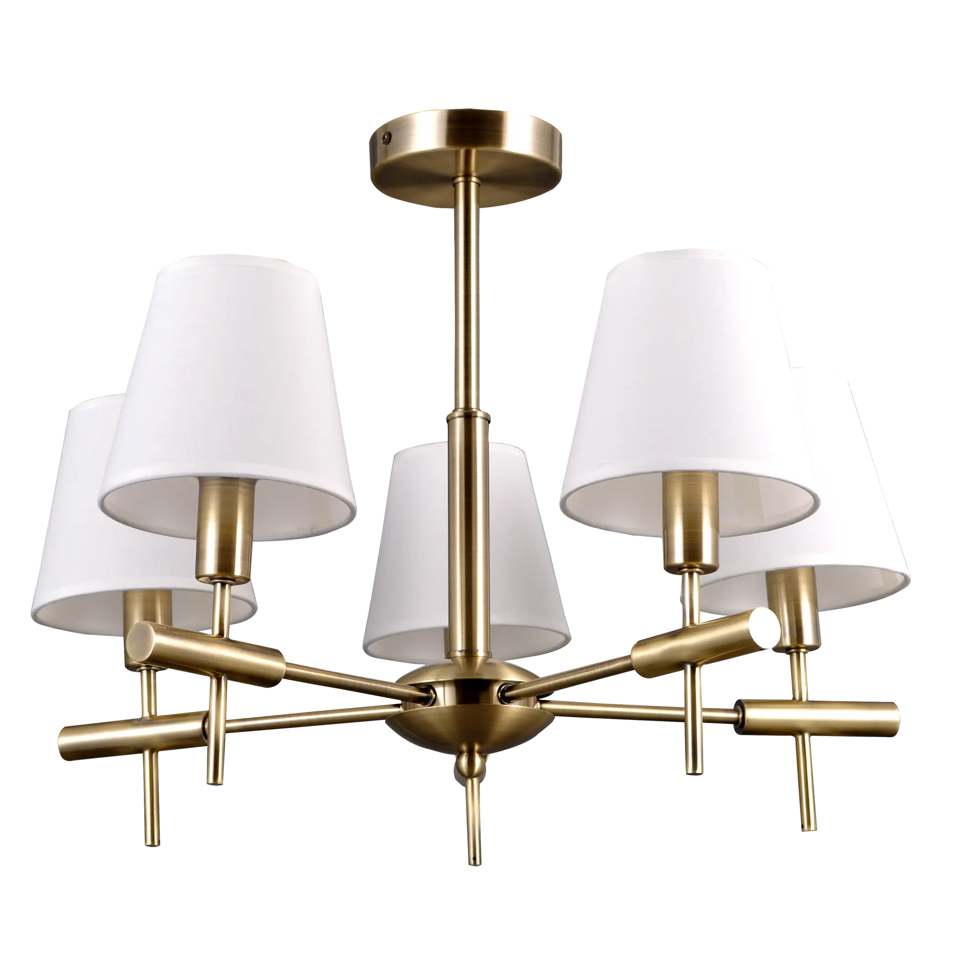 Żyrandol Balter to propozycja oświetlenia, która sprawdzi się w wielu stylach wnętrz. Posiada 5 źródeł światła. Dzięki kloszom w jasnym kolorze doskonale rozświetla pomieszczenie, a ich forma urzeka prostotą. Złote elementy dodają lampie nowoczesnej elegancji. Żyrandol doskonale prezentuje się m.in. w sypialniach i salonach - sprawia, że zyskują nietuzinkowy charakter. Model Balter działa zarówno z klasycznymi żarówkami, jak i LED. Średnica żyrandola wynosi 54 cm, natomiast jej wysokość - 44 cm.