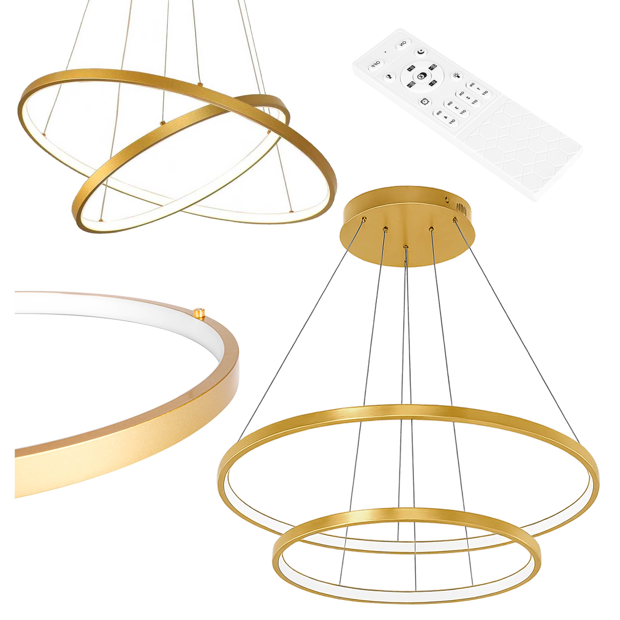 Dwa pierścienie LED o średnicach 40 i 60 cm tworzą harmonijną formę, która sprawdzi się w salonach, jadalniach czy gabinetach. Regulacja temperatury barwowej w zakresie 3000–6500K i możliwość ściemniania pozwalają na dopasowanie oświetlenia do różnych sytuacji – od przyjemnego relaksu po intensywną pracę.