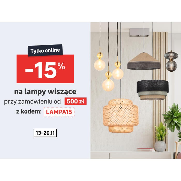 -15% przy zamówieniu od 500zł na lampy wiszące