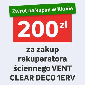 Regulamin Kupon 200 zł za zakup Rekuperatora ściennego VENT CLEAR DECO 1ERV Klubie
